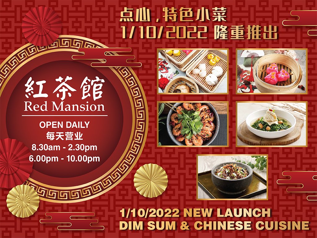 The name of the concept is inspired by the classic song name 'Hong Cha Guan' 红茶館 which comes from the 1990s. Red Mansion 红茶館 is a unique restaurant with a story that brings you many warm memories, love, deep affection, and sweet happiness, it is a feeling of love and happiness. A place is suitable for gathering with your family, friends, and business meeting. Feeling full of love and happiness is our main objection in addition to letting you enjoy delicious ultimate Dim Sum and tantalizing Chinese Cuisine. Our shop can accommodate up to fifty people with the main dining space and two private rooms with Karaoke facility. Not to be missed Red Manson is a new trendy and elegant stylish modern Chinese Restaurant in town.